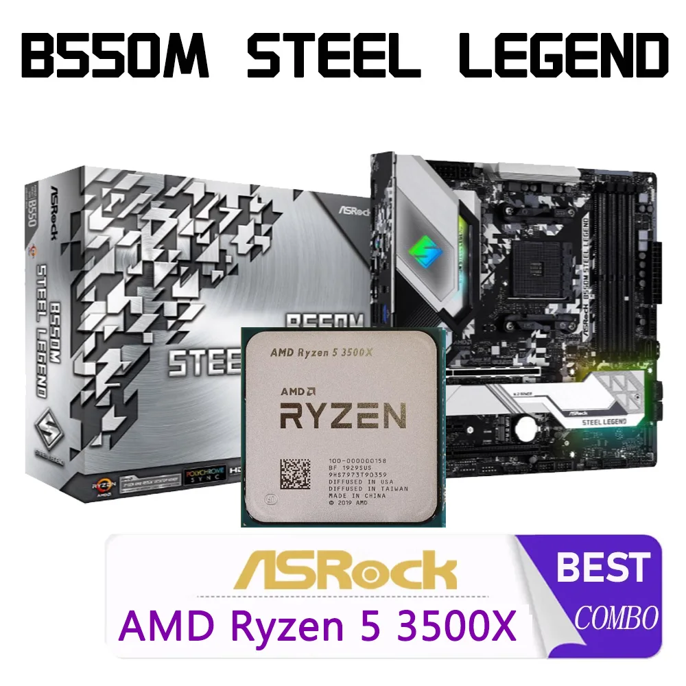 Nuevo combo de procesador AMD R5 3500X ASRock B550M STEEL LEGEND DDR4 Socket AM5 USB PCI-E 4,0 M.2 SATA 128GB Micro ATX placa base sin batería