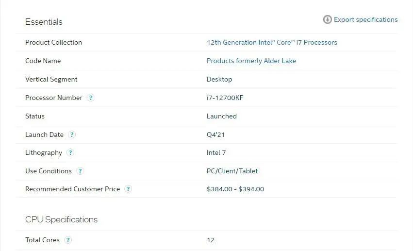 Modelo de CPU i7 12700KF compatible con memoria dekstop.