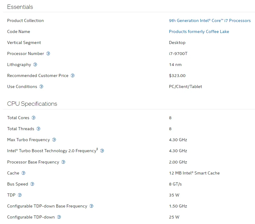 Comprar Procesador Core i7 i7-9700T 9700T 2,0 GHz, CPU de ocho núcleos y ocho hilos, 12M, 35W, PC de escritorio, LGA 1151