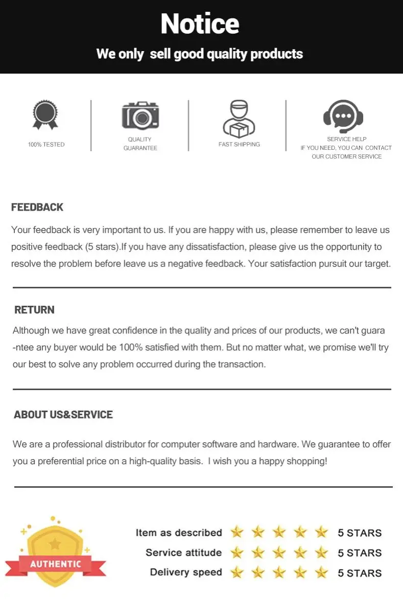 1.Se utilizan la CPU.Algunos de ellos pueden tener rayones o abolladuras en la superficie.Se probará finamente antes del envío para garantizar el rendimiento; realice su pedido sin preocupaciones.