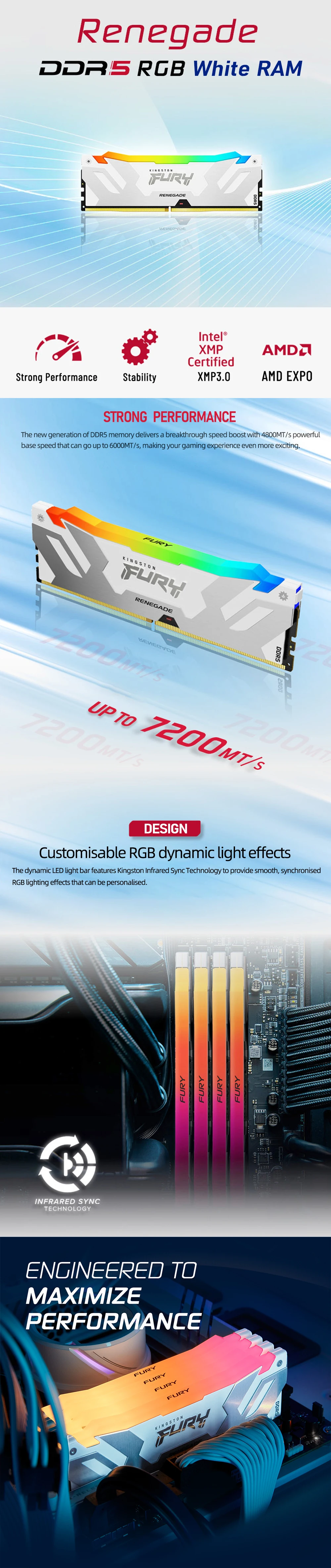 Modelo de RAM: Kingston Fury DDR5 5600MHz 16GB x 2 piezas blanco RGB (nuevo)