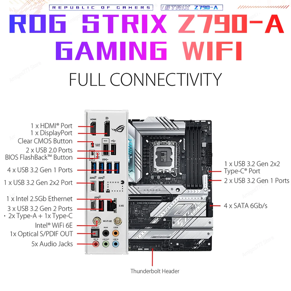 ASUS-Placa base ROG STRIX para juegos con WiFi, DDR5 Intel LGA 1700 socket(12. ª y 13. ª generación de procesadores Intel), 2. ª generación i5 13600 13600K i513600KF i7 13700K i7 13700KF i9 13900K i9 13900KF Intel 13th Gen Core I3 i5 i7 i9 LGA 1700 CPU Procesadores Samsung DDR5 RAM Kingston FURY Beast Crucial RAM DDR4 RGB Asgard DDR4 3200 Memoria RAM Kington Fury Beast DDR4 EXPO RAM Memoria Crucial RAM DDR5 4800MHz 16GB 32GB CL40 Corsair Vengeance RamAdata xpg Lancer RGB ddr5 16gbx2 5600MHz 6000MHz 7200 7600 7800MHz Blanco RGB