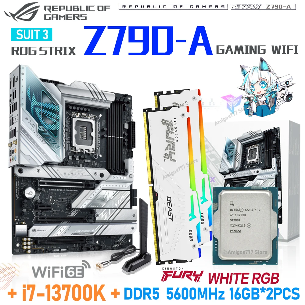 Comprar Procesador i7 13700K con placa base blanca DDR5 LGA 1700 ASUS ROG STRIX Z790 A GAMING WIFI 6E con 5600MHz 32GB RGB EXPO RAM, nuevo