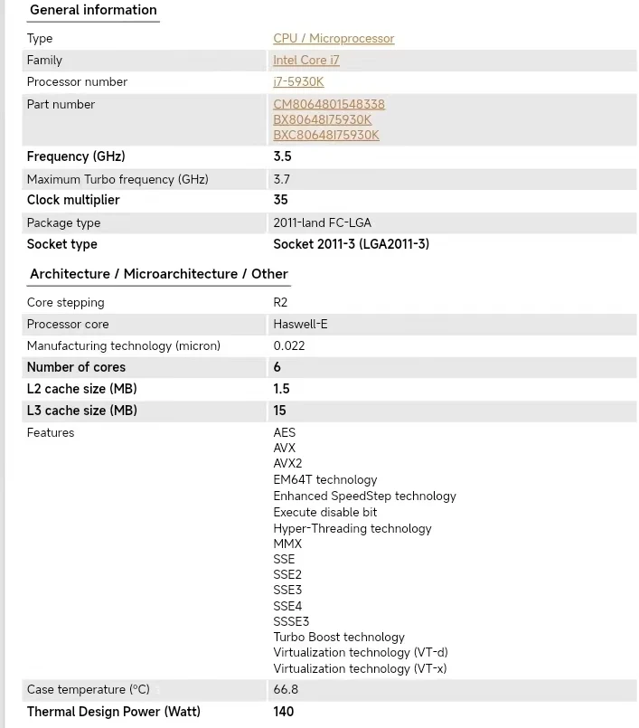 Comprar Procesador i7-5930K i7 5930K CPU, 3,5 GHz, seis núcleos, LGA 2011, 22nm, 140W, piezas deshilachadas