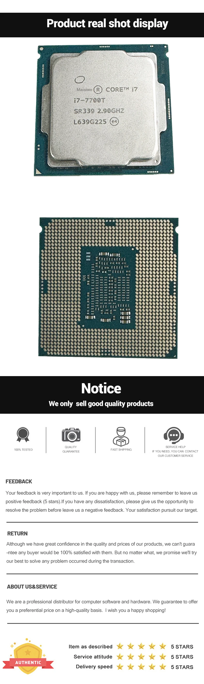1.Se utilizan la CPU.Algunos de ellos pueden tener rayones o abolladuras en la superficie.Se probará finamente antes del envío para garantizar el rendimiento; realice su pedido sin preocupaciones.
