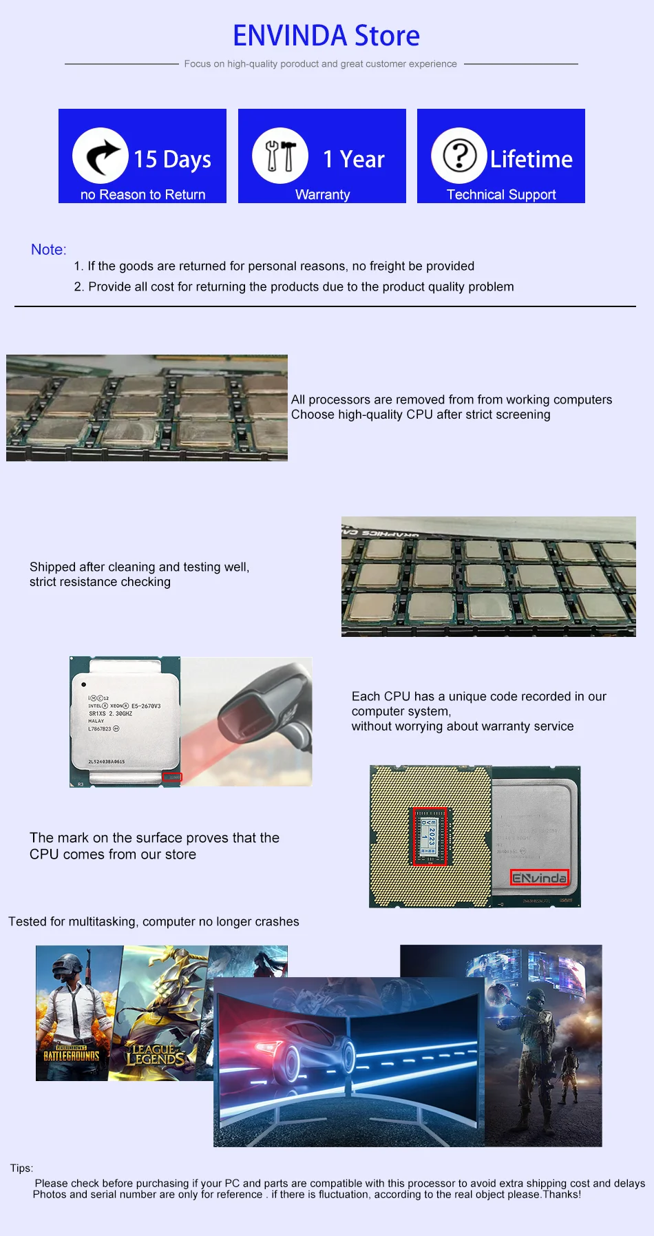 Por favor, compruebe antes de comprar si su PC y sus piezas son compatibles con este procesador para evitar costes de envío adicionales y retrasos.Las fotos y el número de serie son solo para referencia, si hay variación, de acuerdo con el objeto real por favor. ¡Gracias!Notas de compra: