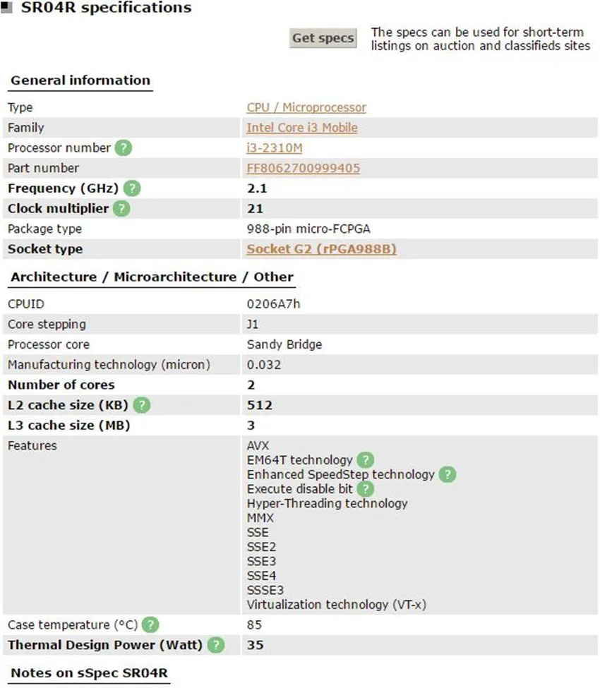 Comprar Procesador Intel Core I3 2310M 2310, CPU para portátil, i3-2310M, caché 3M, 2,10 GHz, SR04R, PPGA988, compatible con PM65, HM65, Chipset