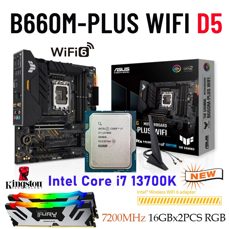 Comprar Procesador Intel Core i7 13700K ASUS TUF GAMING B660M PLUS WIFI DDR5, placa base Kingston Renegade 7200MHz16GBx2PCS Memoey Combo