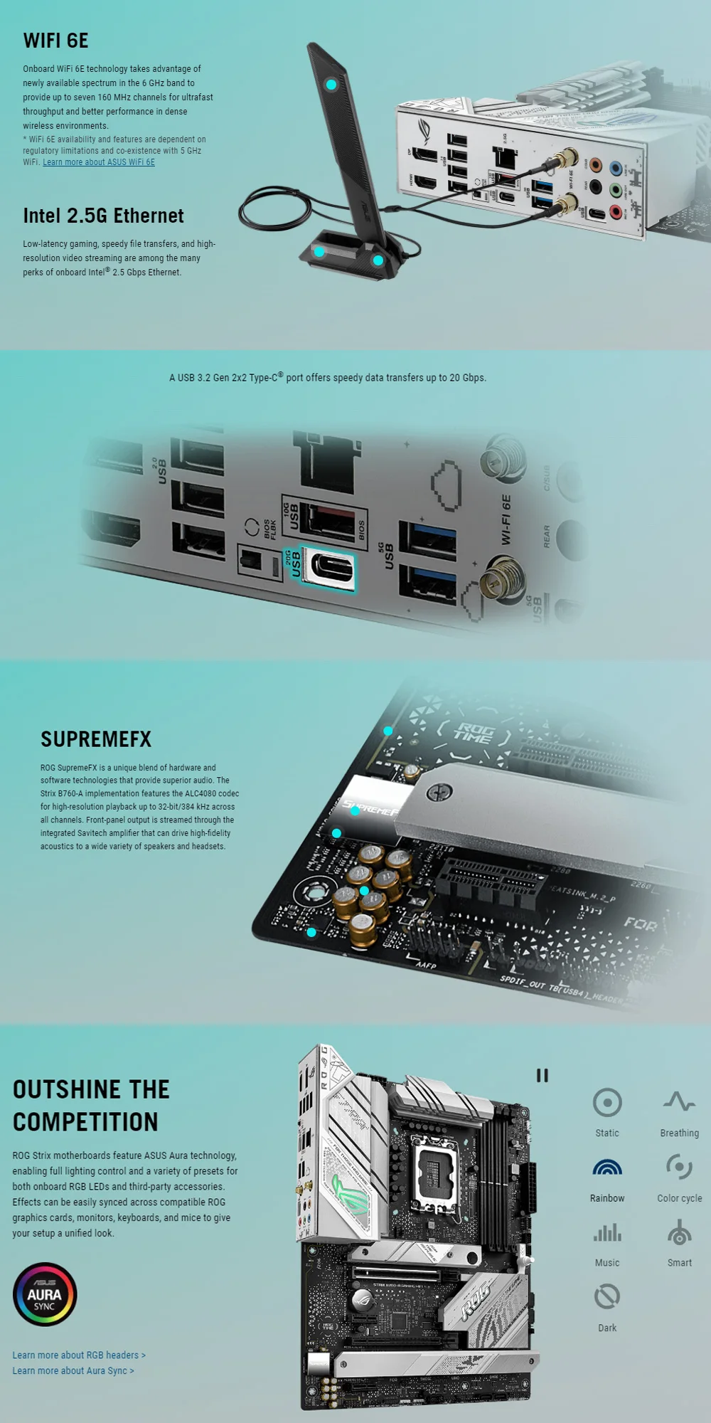 Redes de alto rendimiento: Intel Wi-Fi 6E integrado (802.11ax) e Intel 2,5G Ethernet con ASUS LANGuard.