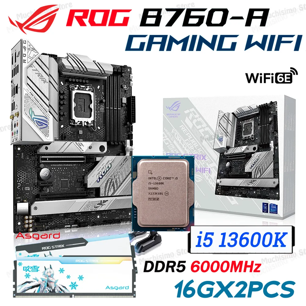Comprar Procesador Intel i5 13600K con ASUS ROG STRIX, B760-A para juegos, WIFI, DDR5, LGA 1700, Mohterboard Asgard, 6000MHz, 32GB, RGB, Combo de memoria