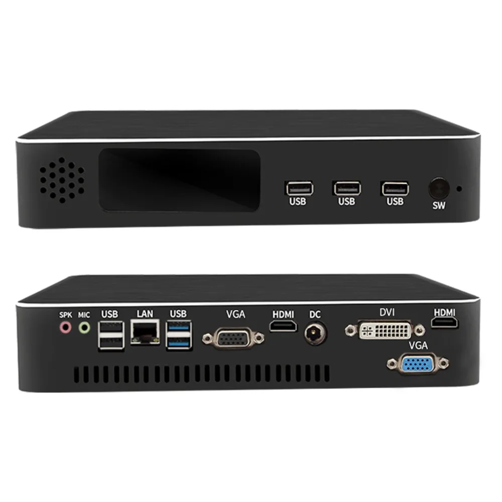 Intel 3,6 GHz de cuádruple núcleo, 6M de caché TDP de 65W,RAM DDR4, SSD MSATA, WiFi, 2 * USB 3,0, 5 * USB2.0,1 * HDMI,1 * DVIIntel UHD Graphics 630, Ventilador, Carcasa Metálica