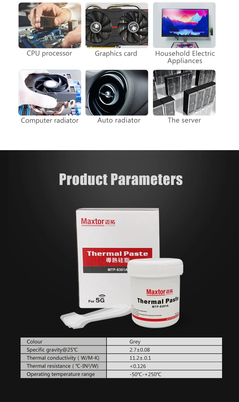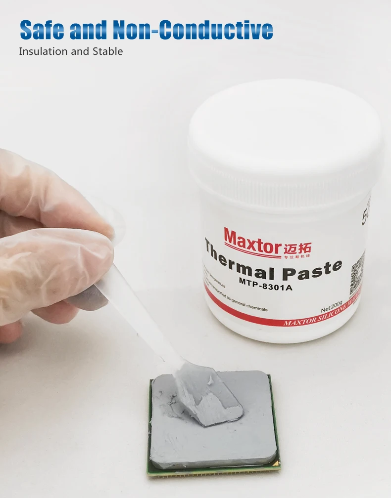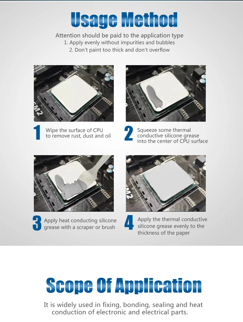 Estas características disipan eficazmente la disipación de calor de los componentes centrales. Su textura es lo suficientemente delicada como para extenderse con los dedos en los componentes sin causar demasiada confusión.