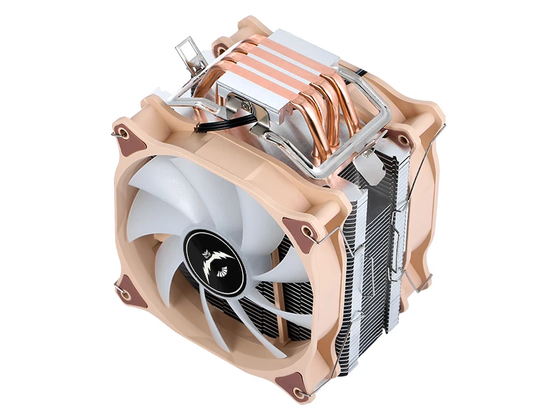 Ventilador de 120mm con base de aluminio puro combinado con 4 tubos de calor de cobre puro para una disipación de calor eficiente. Resuelva los problemas de altas temperaturas y haga que su ordenador sea más fluido. Ventilador súper silencioso. Los rodamientos hidráulicos reducen la resistencia a la fricción y reducen eficazmente el ruido. Diseño multiplataforma, fácil instalación.