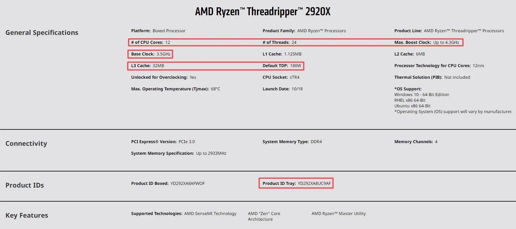 Comprar Procesador para Ryzen Threadripper 2920X 12 núcleos 24 hilos Reloj base 3,5 GHz máx. Aumentar hasta 4,3 GHz
