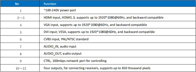 11.Varias entradas: 2 HDMI1.3,1 DVI,1 VGA,1 CVBS;