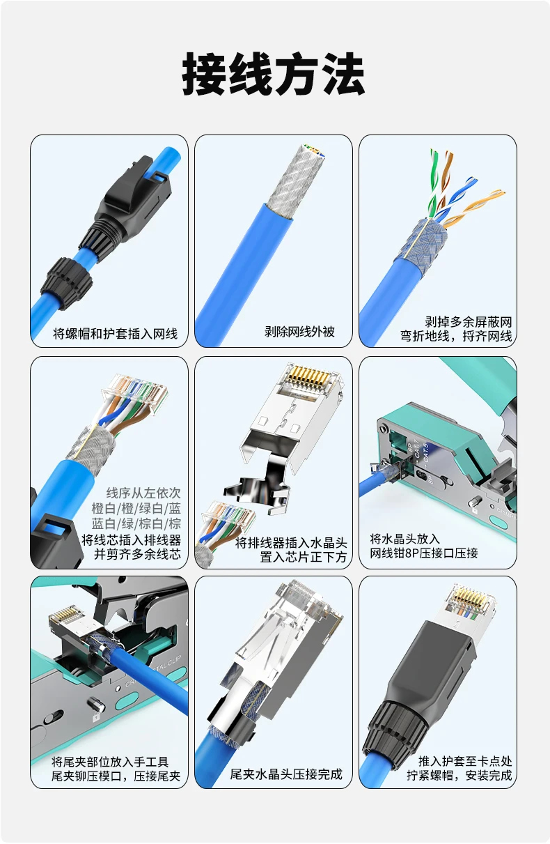 Conector Profinet blindado RJ45 industrial, absorbente de golpes, 4 pines, 8 pines, CAT6A, cabeza de cristal, enchufe de terminal de Cable de red Ethernet