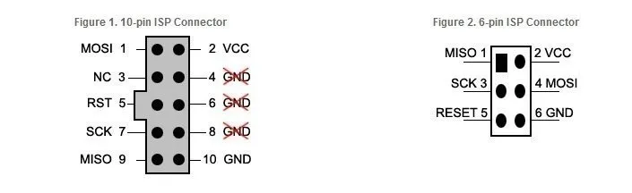 Las figuras 1 y 2 muestran las placas para los conectores ISP de 10 y 6 pines.