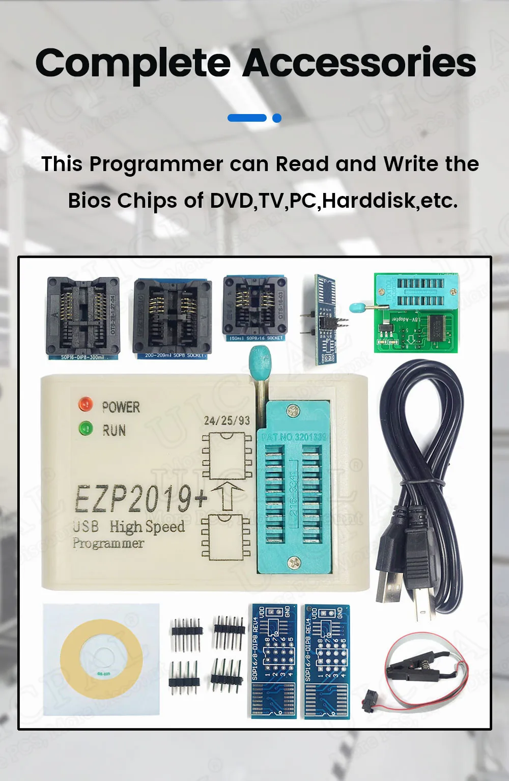 Programador USB EZP2019 de alta velocidad SPI USB 2.0 para 24 25 93 EEPROM 25 Chip BIOS Flash con Kit de quemador de Clip de enchufe SOP