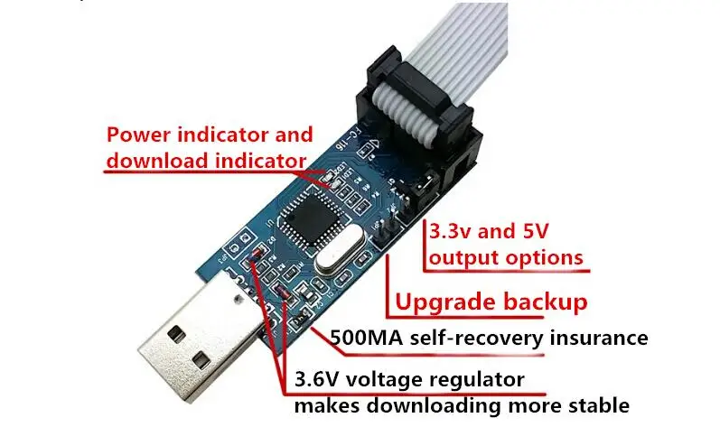 Se puede utilizar para la conversión de interfaz de descarga de la placa de desarrollo MCU de la serie AVR.