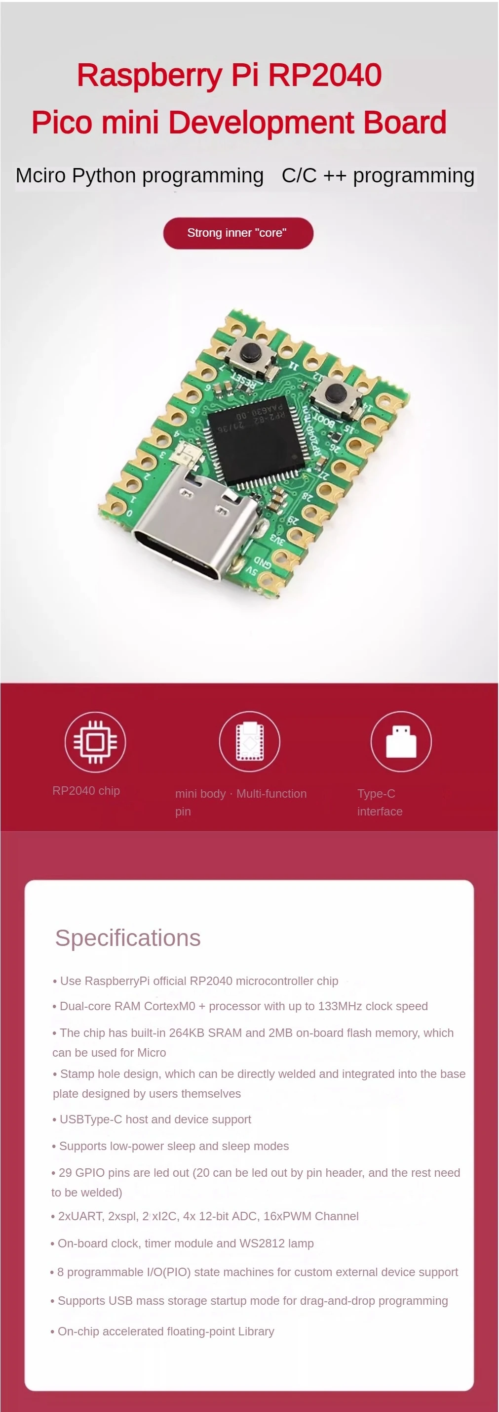 4.La placa de desarrollo admite programación de aplicaciones como Raspberry Pi Pico, MicroPython, etc.