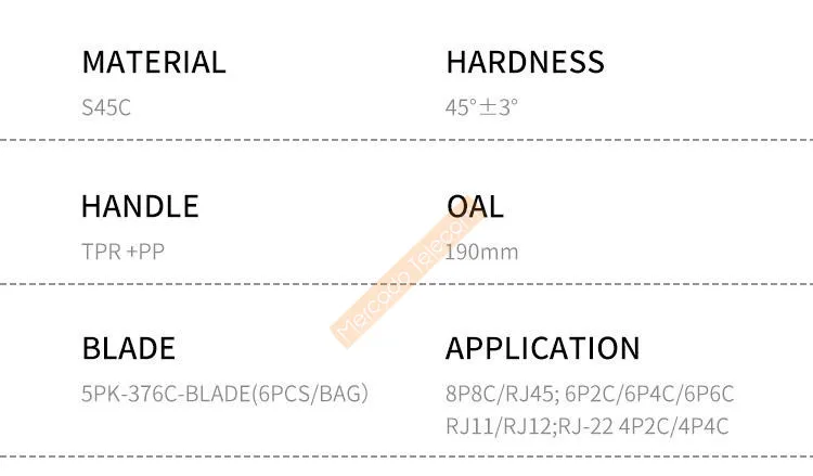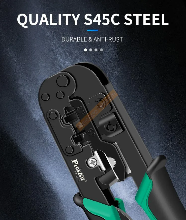 La herramienta de engarzado para telecomunicaciones Pro'sKit CP-376TR está diseñada para brindar longevidad y facilidad de mantenimiento.La herramienta viene con una cuchilla de repuesto, modelo 5PK-376C-BLADE, que está disponible en un paquete de seis.La hoja está fabricada con acero S45C de alta calidad, lo que garantiza durabilidad y un rendimiento constante.El diseño de la herramienta permite un reemplazo rápido y sencillo de la hoja, minimizando el tiempo de inactividad y garantizando que sus conexiones de red estén siempre seguras y confiables.