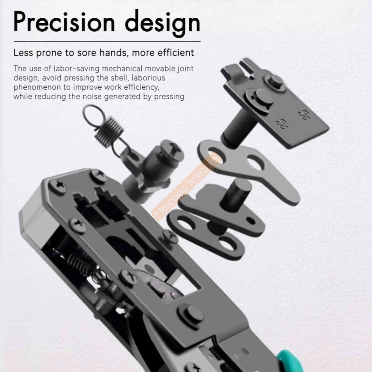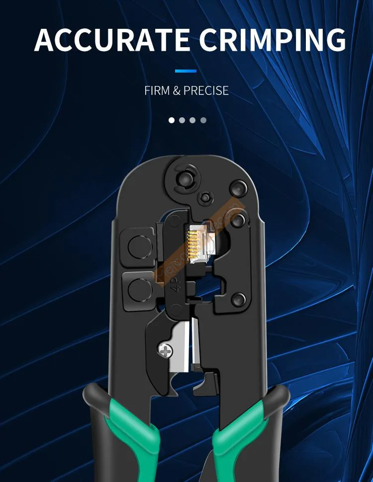 Esta herramienta versátil es un complemento esencial al kit de herramientas de cualquier técnico de red.Es capaz de engarzar una amplia gama de enchufes modulares, incluidos enchufes modulares 8P8C/RJ45, 6P2C/6P4C/6P6C RJ11/RJ12 y 4P2C/4P4C.El tamaño compacto de 190 mm de la herramienta facilita su manejo y almacenamiento, mientras que el embalaje en blister garantiza que la herramienta esté bien protegida y lista para usar nada más sacarla de la caja.