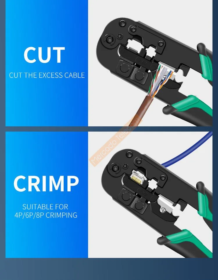 Enchufes modulares aplicables: 8P8C/RJ45, 6P2C/6P4C/6P6C RJ11/RJ12, enchufes modulares para auriculares 4P2C/4P4C