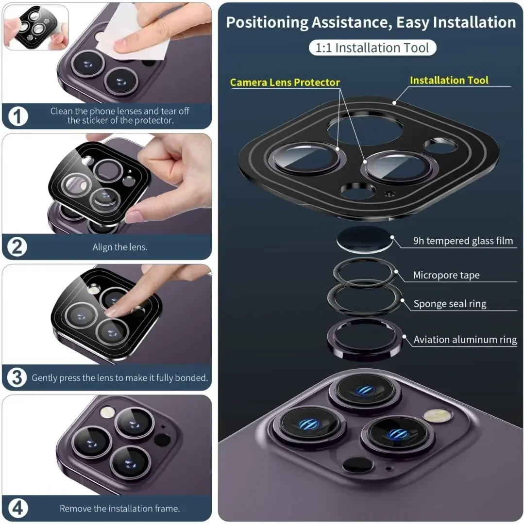 Protección Original de lente de cámara de color morado oscuro para iPhone 14 Plus 13 Pro Max 12 Mini 14Pro 13Pro accesorio protector de vidrio templado