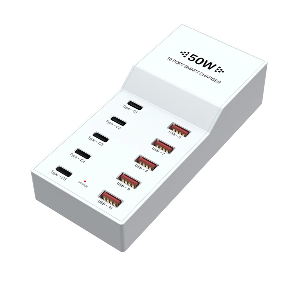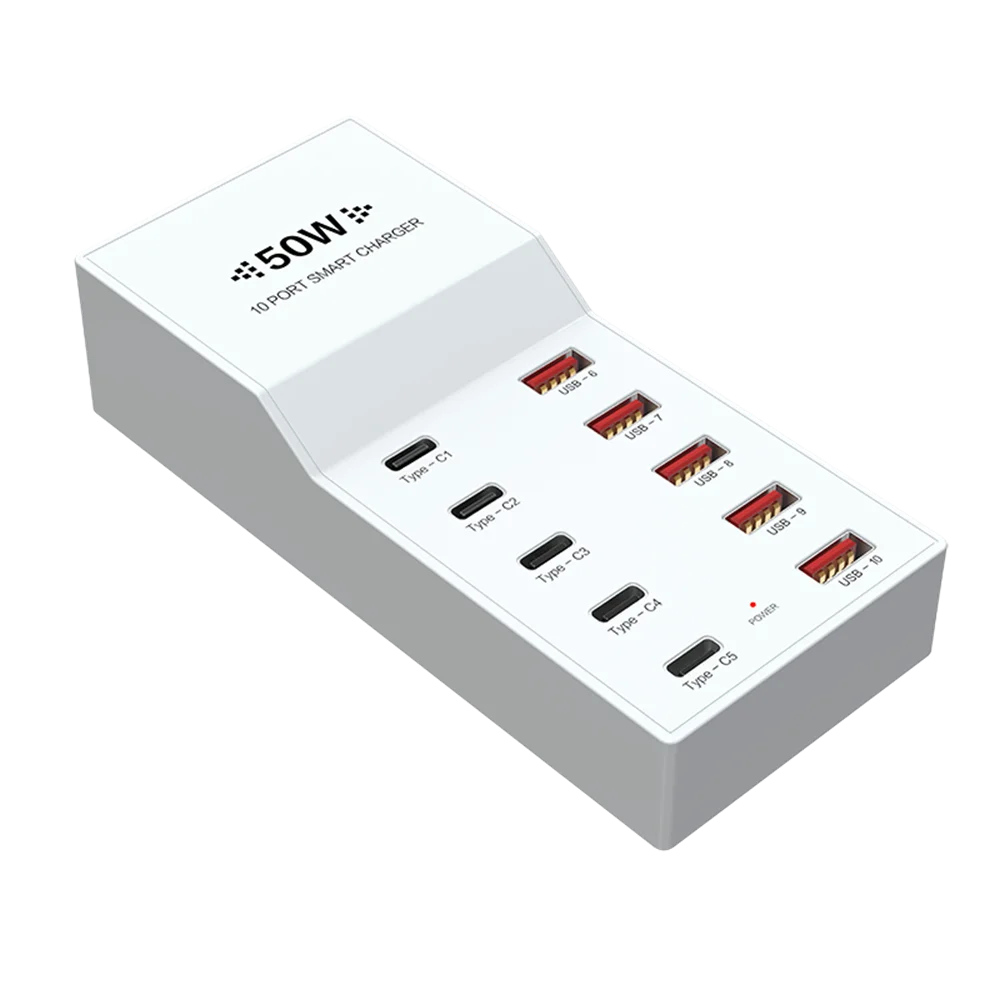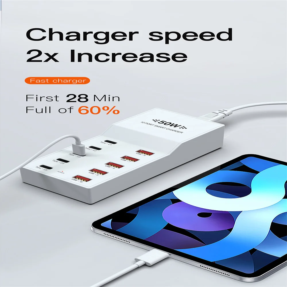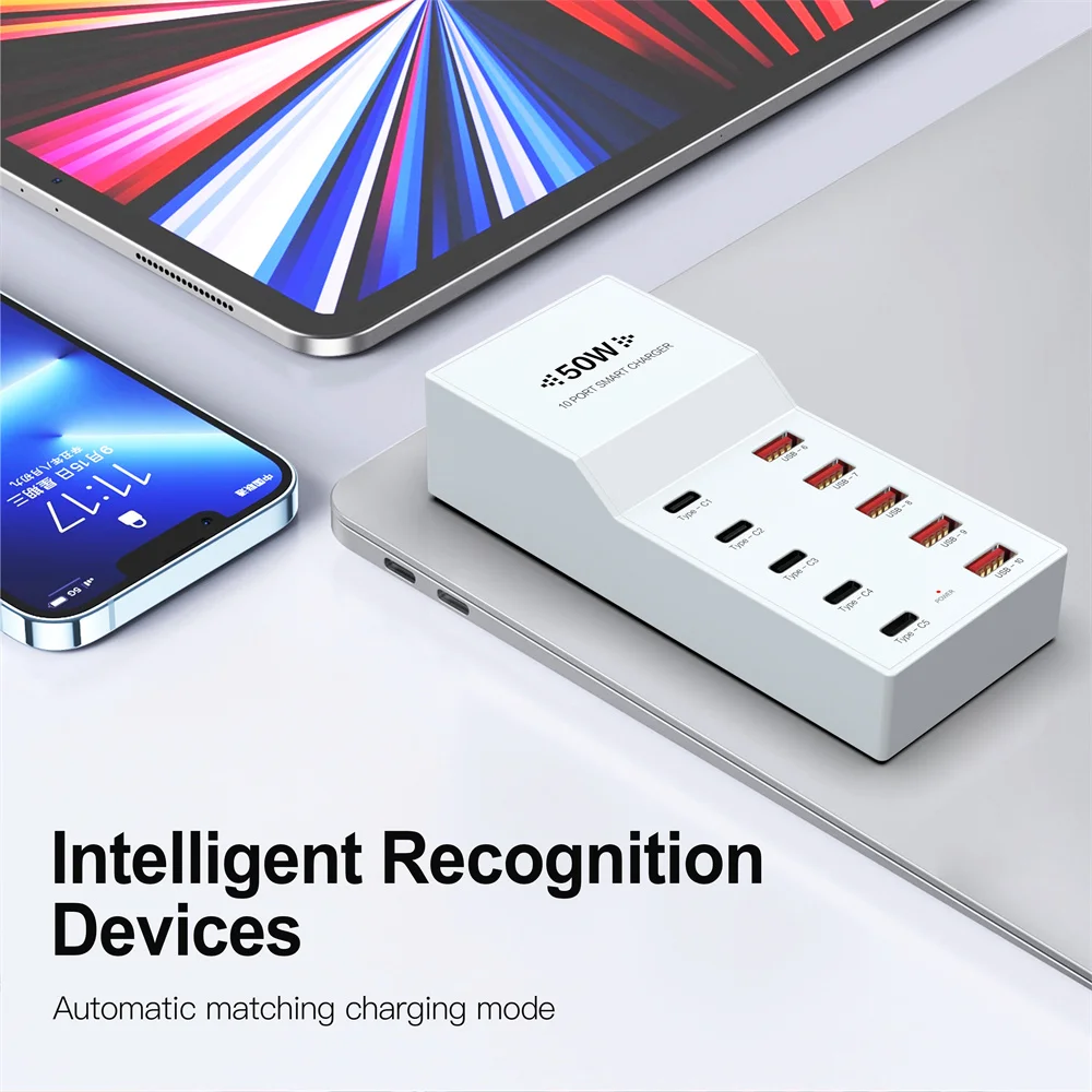 Protección de seguridad múltiple La carga simultánea viene con 50W 10 puertos para acortar el tiempo de carga Cargador seguro y rápido