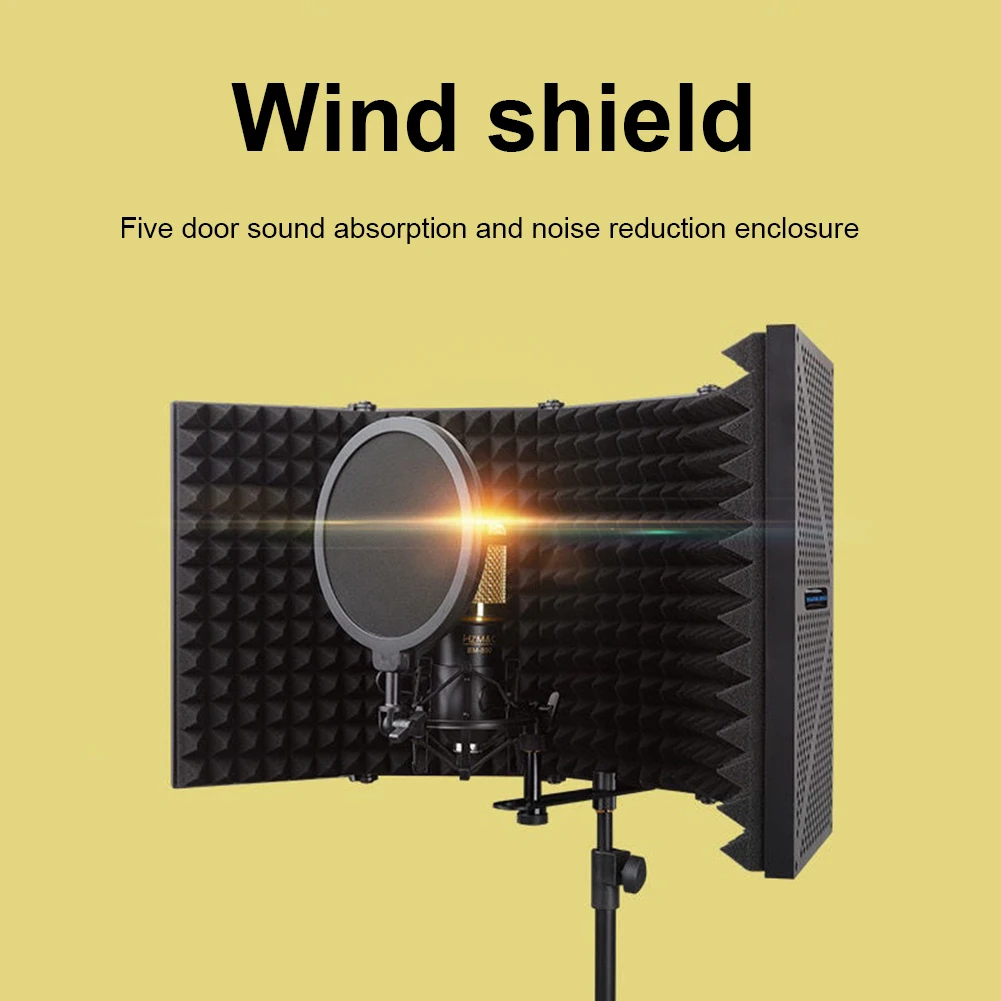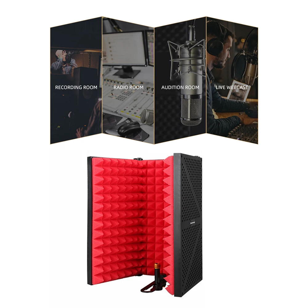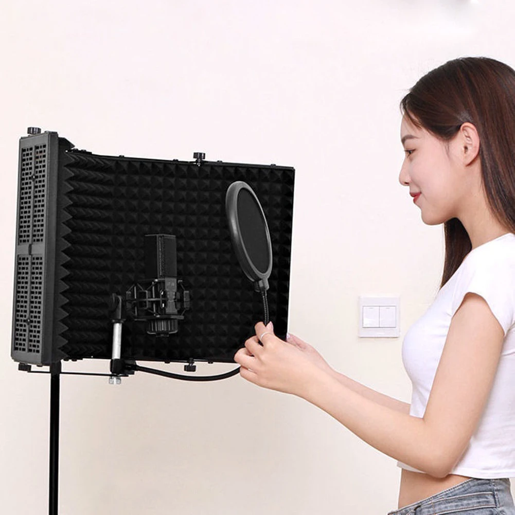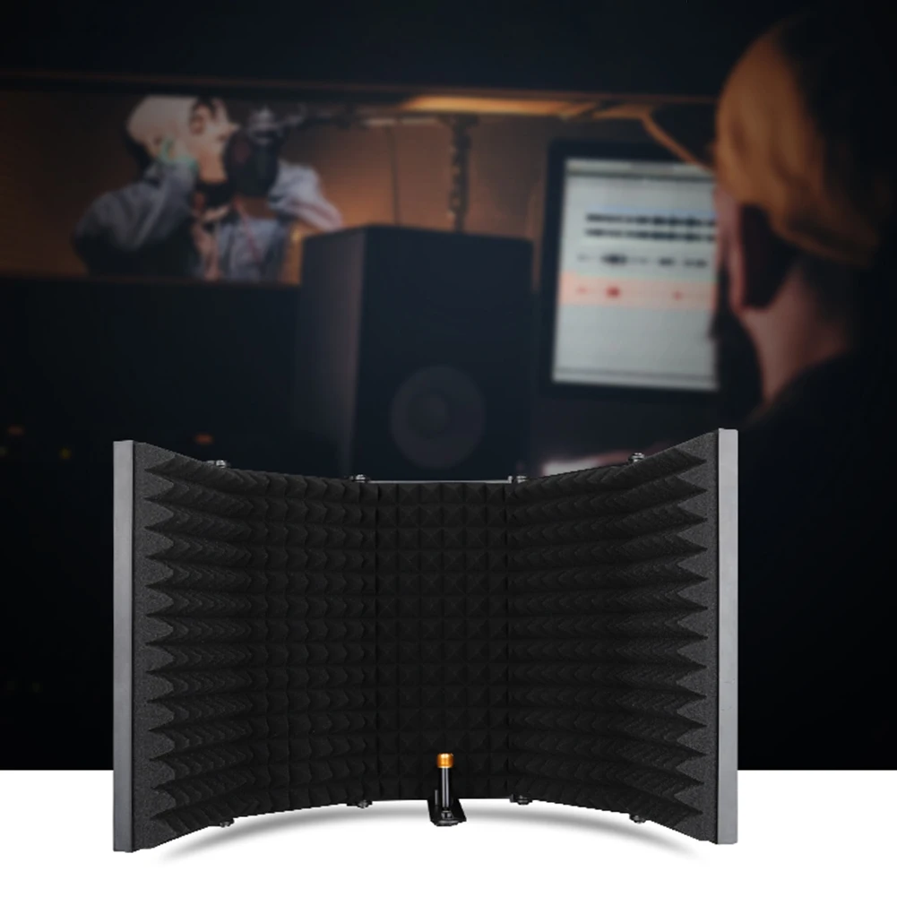 Comprar Protector de aislamiento de micrófono de estudio para grabación, pantalla de viento de espuma absorbente de sonido, cubierta de aislamiento plegable