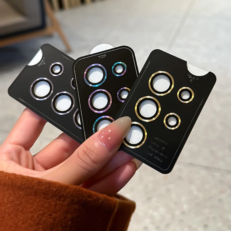 Protector de anillo de Metal de vidrio con patrón de CD Camara para Samsung Galaxy S26 S25 FE Edge S24 Plus S23 Ultra cubierta de lente de protección de cámara