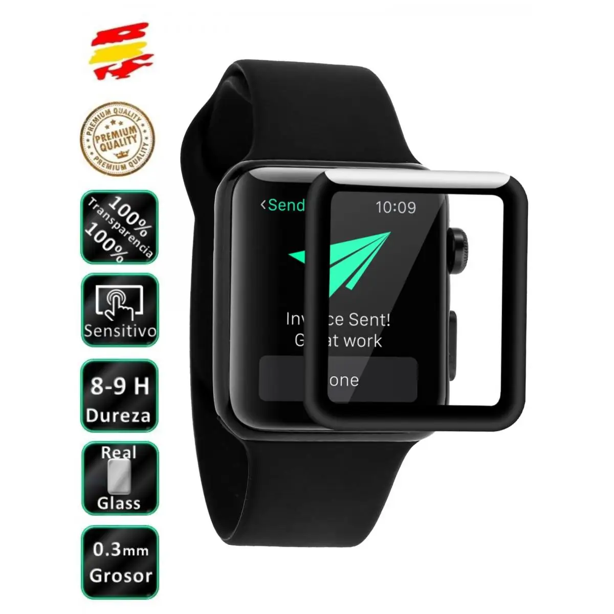 Comprar Protector Apple Watch 42 mm Negro Completo 3D Cristal Templado de Pantalla