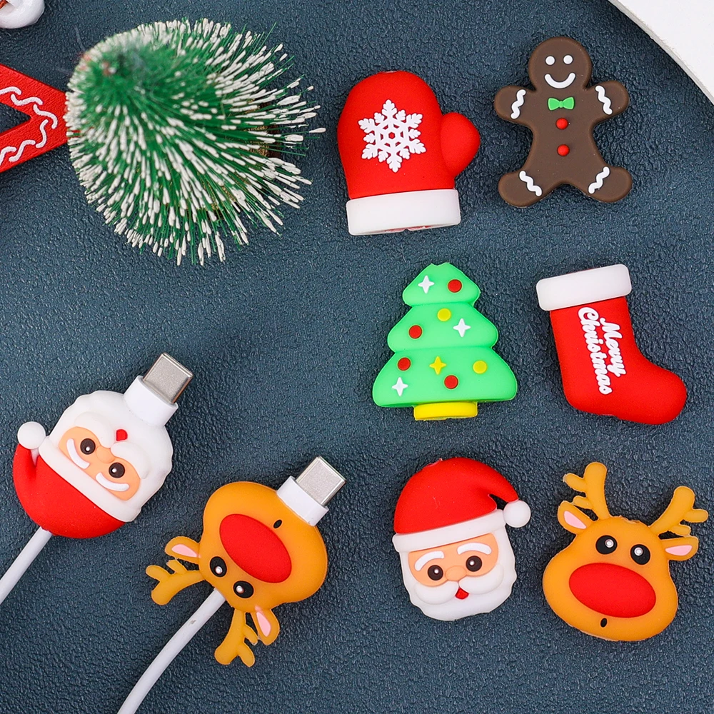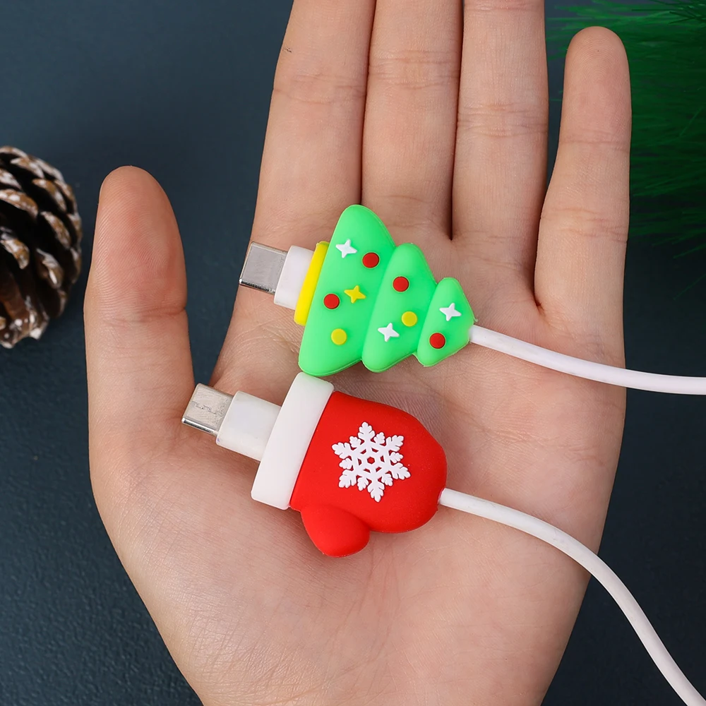 DescribeBonita cubierta protectora de cable de datos USB de Navidad, cables de datos fijos, protege los cables y los cables de alimentación de la influencia del polvo, el desgaste y los enredos; reduce el riesgo de desgaste y rotura.