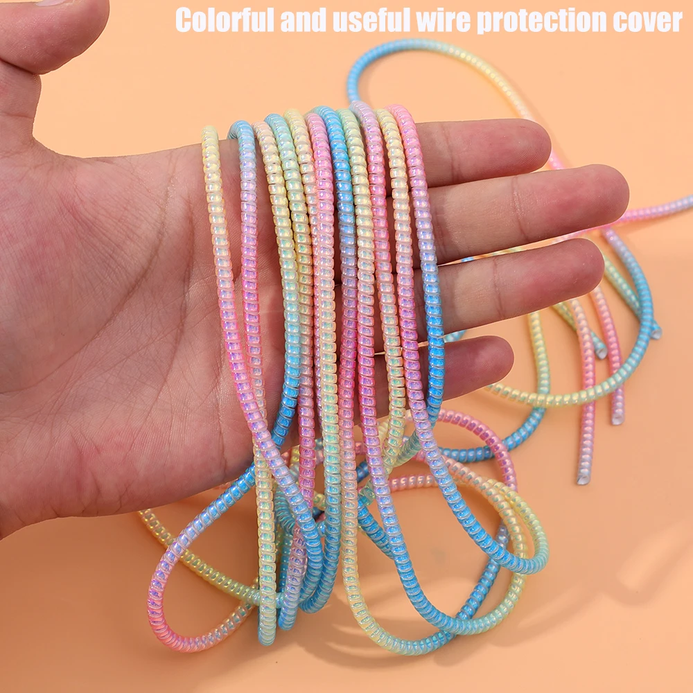 Protector de Cable de cargador en espiral láser, envoltura Universal, línea de datos, enrollador de decoración para iPhone, Samsung, Huawei, 1,6 M