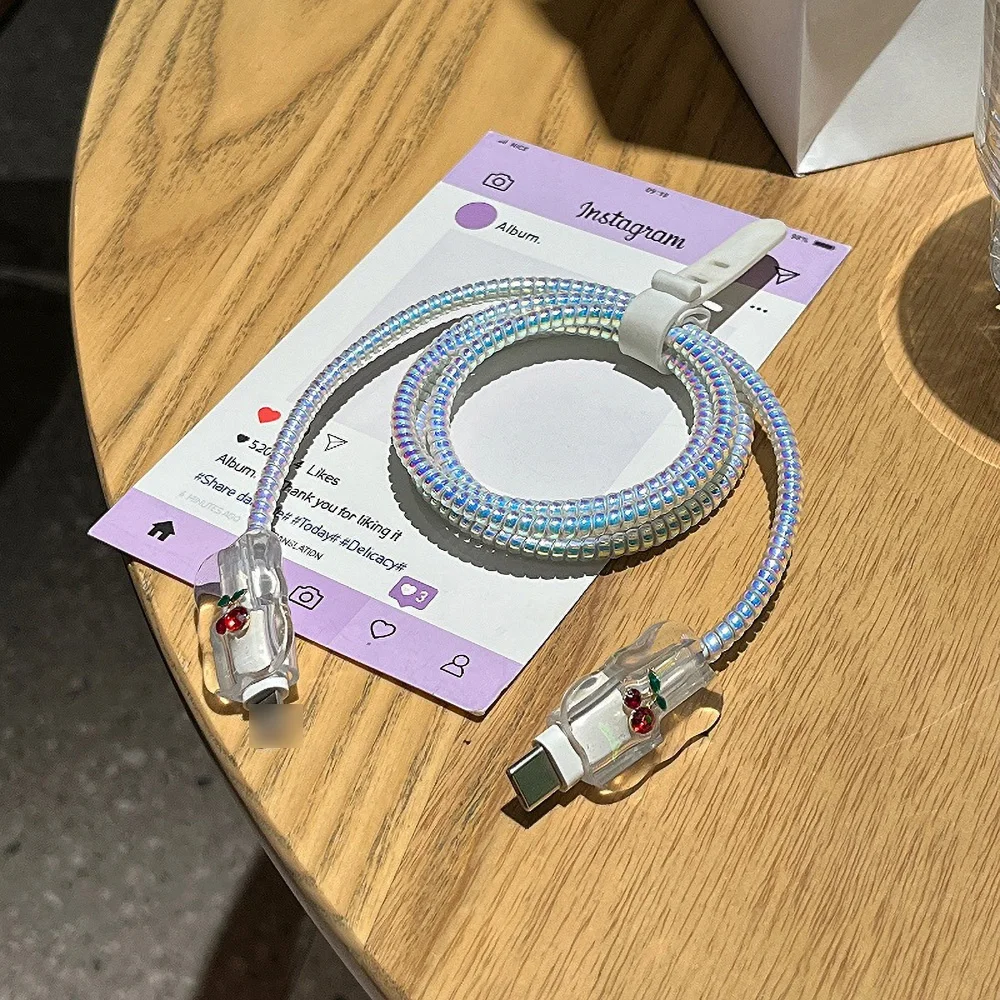 Comprar Protector de Cable de datos de carga Cherry, accesorios enrolladores para iPhone 18 20w 16 Pro Max 15 14 13, cubierta protectora de cargador rápido, 5 uds.