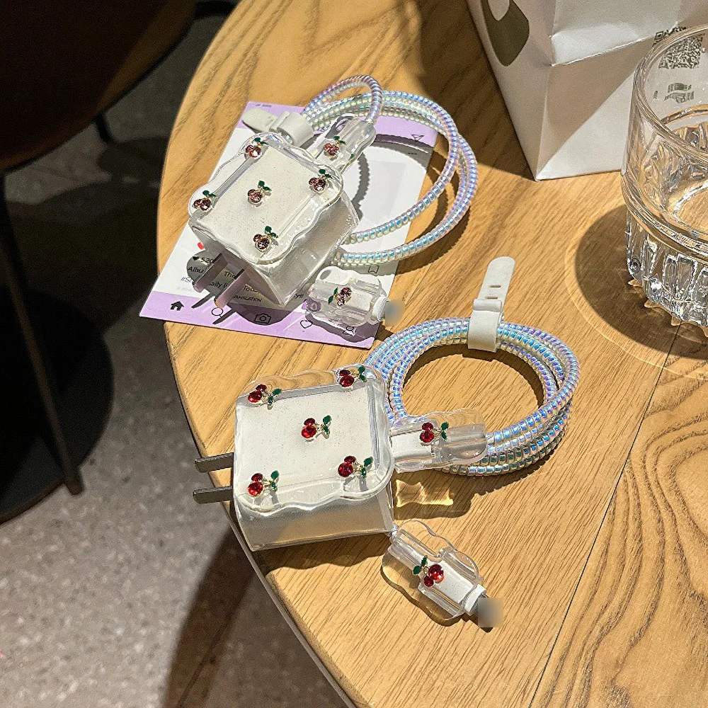 Protector de Cable de datos de carga Cherry, accesorios enrolladores para iPhone 18 20w 16 Pro Max 15 14 13, funda protectora de cargador rápido, 5 uds.