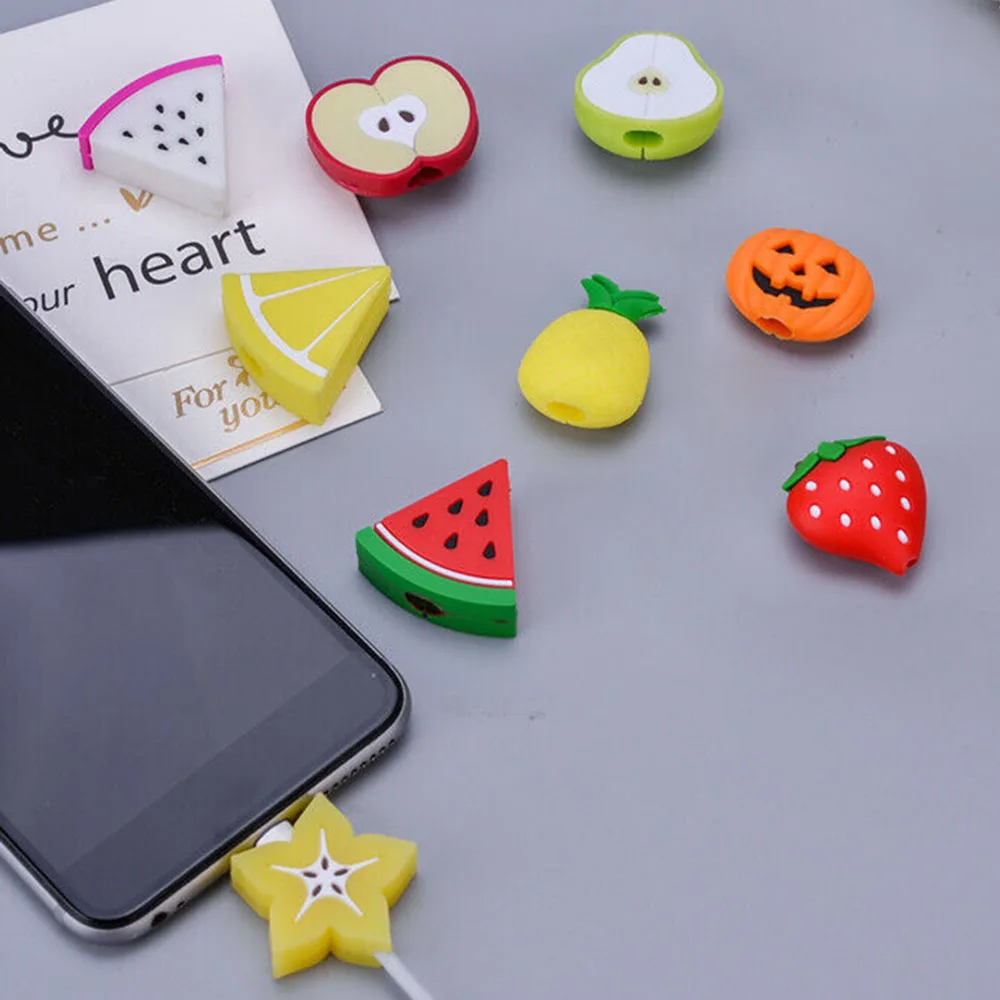 Bonito Protector de Cable de fruta, organizador de cables para mordeduras, protector de bobinadora para Cable de carga USB, línea de datos, auriculares, cubierta protectora de Cable