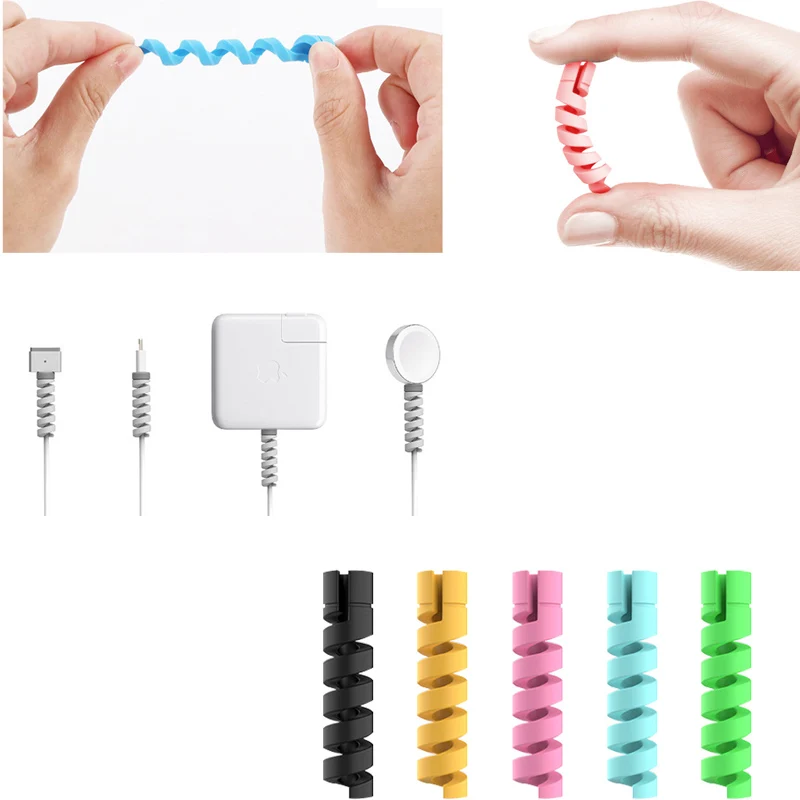 Protector de Cable con 5 orificios, bobinadora de silicona, cubierta organizadora de Cable de alambre para MI iphone, Cable cargador USB