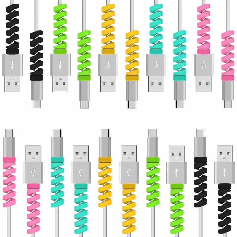 Comprar Protector de Cable de silicona con 5 agujeros, bobinadora, organizador de Cable, cubierta para MI iphone, Cargador USB