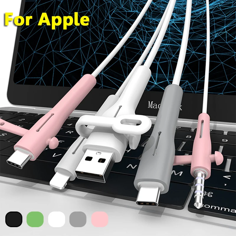 Comprar Protector de Cable USB de silicona suave, organizador de envoltura de Cable de datos de alta elasticidad para Apple IPhone, protección de bobinadora de Cable de carga, 2 uds.