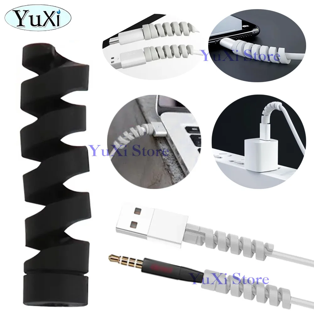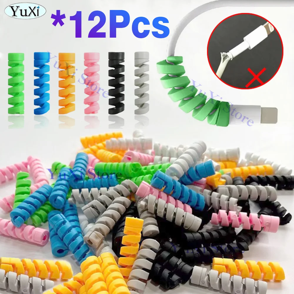 Comprar Protector de cables de silicona para cables de datos, enrollador en espiral, organizador de cables, cubierta para cables de cargador USB de teléfono, 12 Uds.