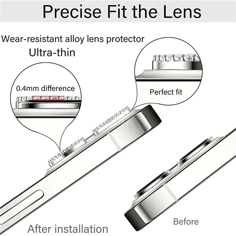 Protector de cámara de diamante para IPhone 16 17 15 Pro Max 12 Pro, anillos de Metal de vidrio templado, funda de lente para 12 Mini 14plus