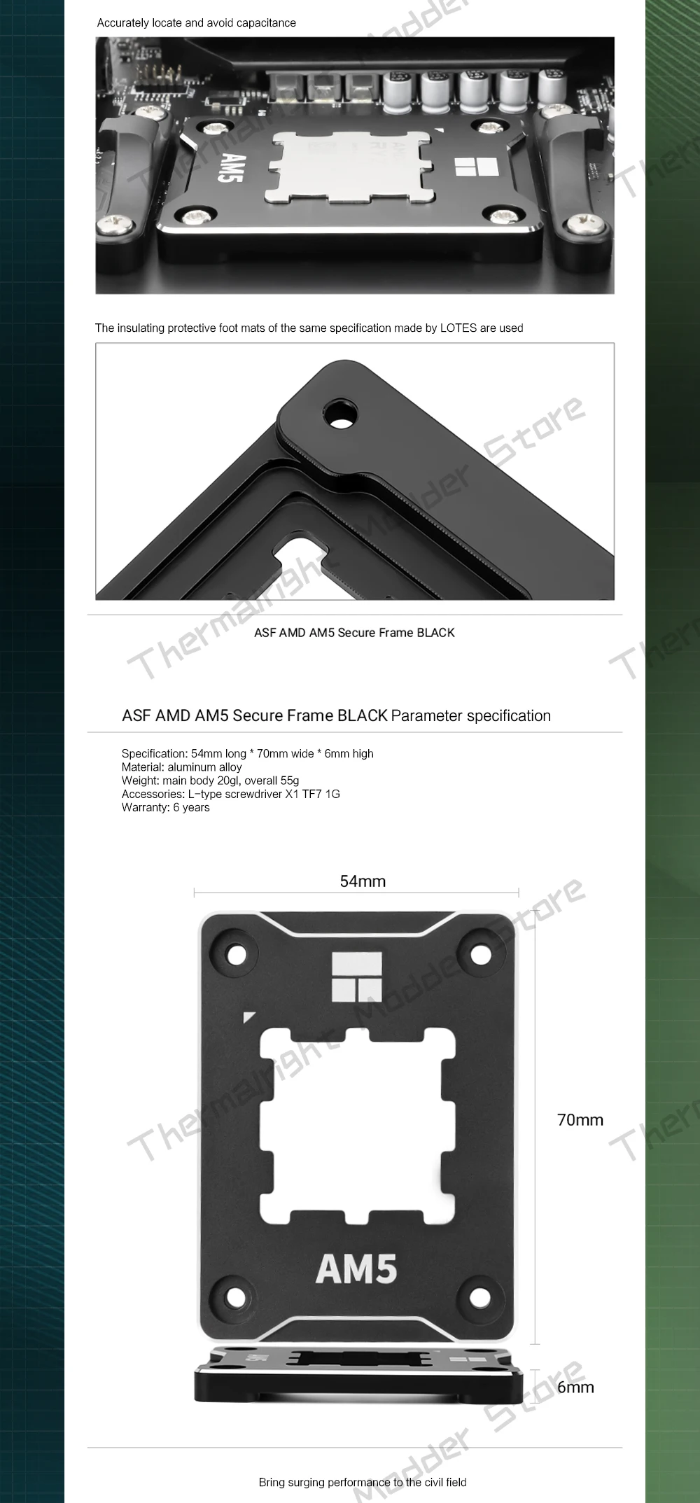 Protector de CPU AMD Marco seguro AM5 Soporte antiflexión + compuesto TF7 AMD-ASF