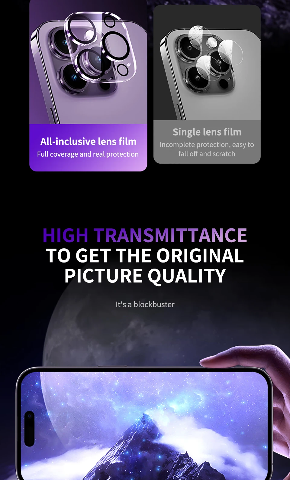 Comprar Protector de cristal para lente de cámara de iPhone, vidrio templado para cámara de 13, 14, 15 Pro Max, 12 Mini, 14, 15 Plus, 11 Pro, 4 unidades