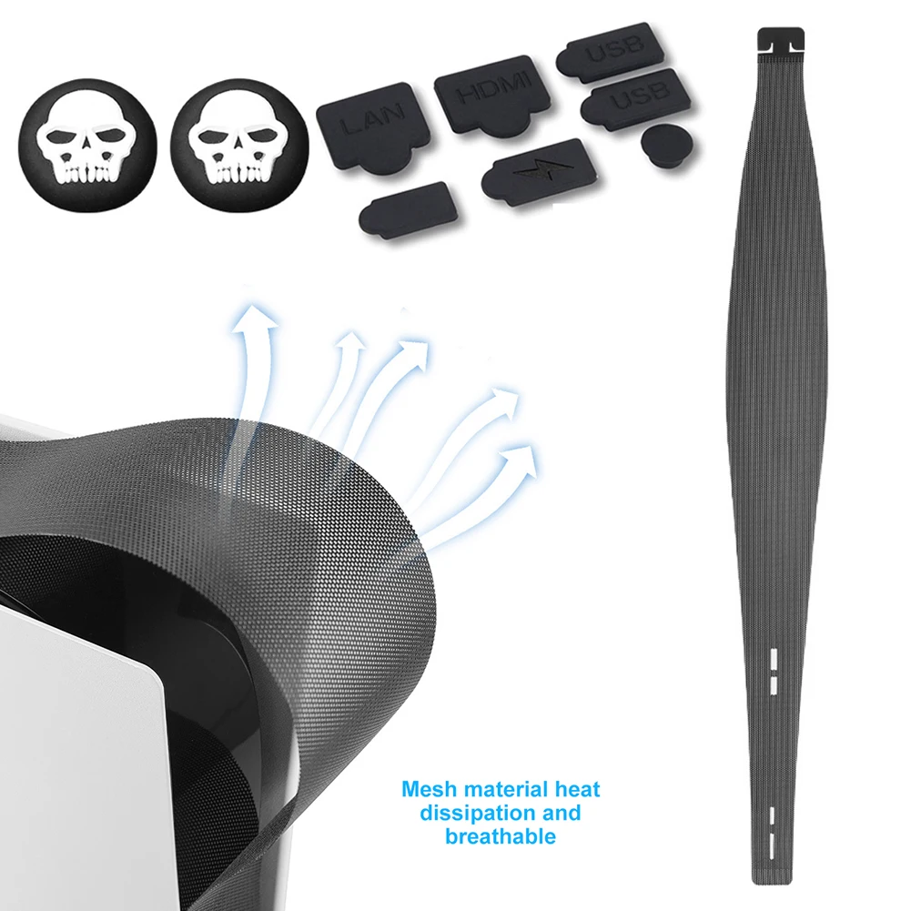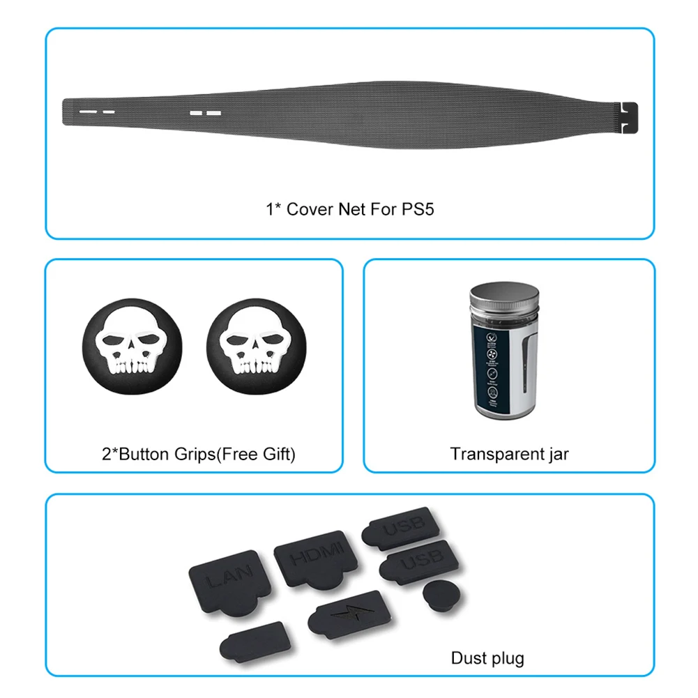 Cubierta antipolvo de malla, transpirable, antiarañazos, Protector lateral, malla antipelo para mascotas, filtro de red a prueba de polvo con 2 pares de empuñaduras de pulgar y juego de tapones antipolvoCompatible conPlaystation 5 PS5 Disco/Consola Digital
