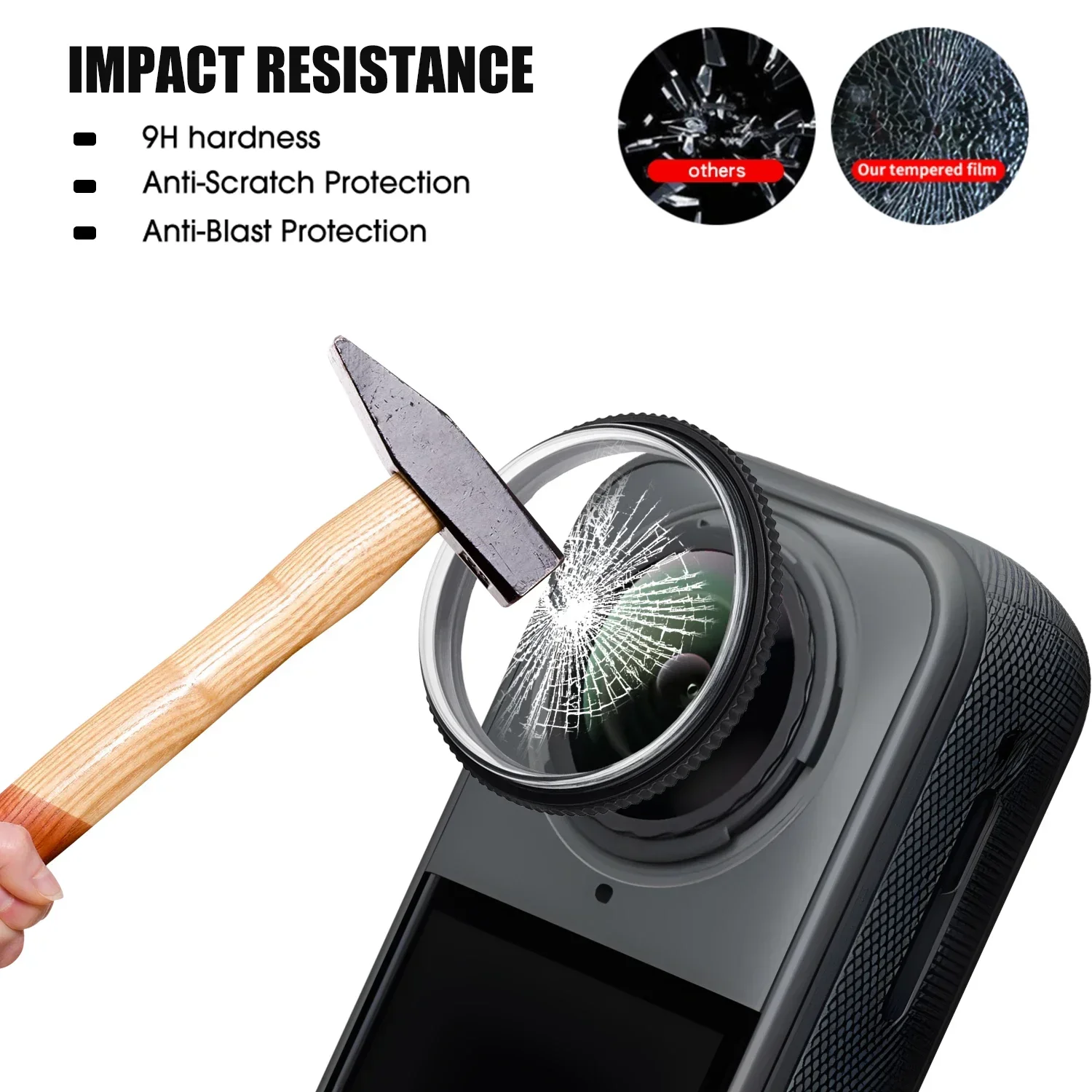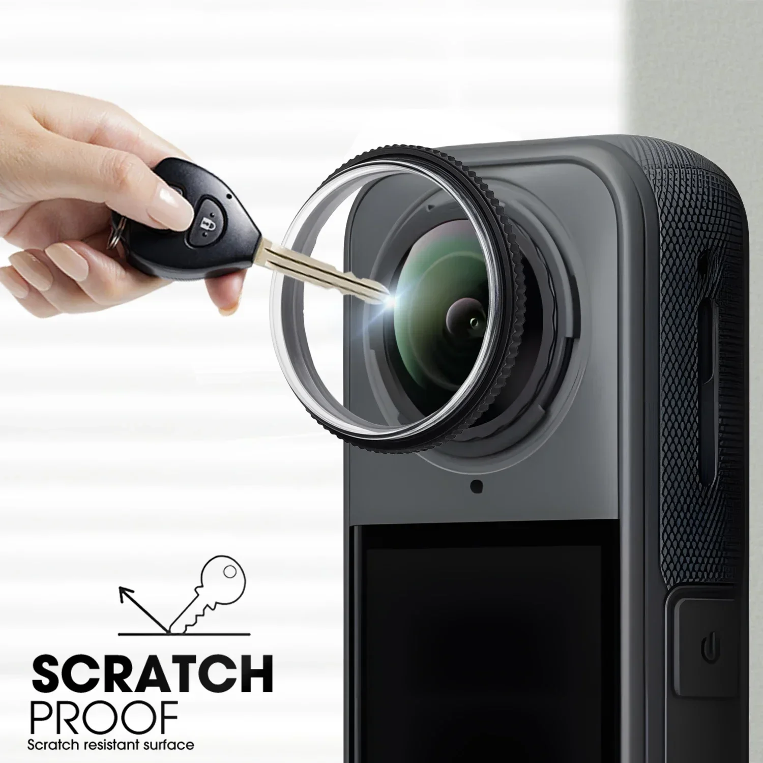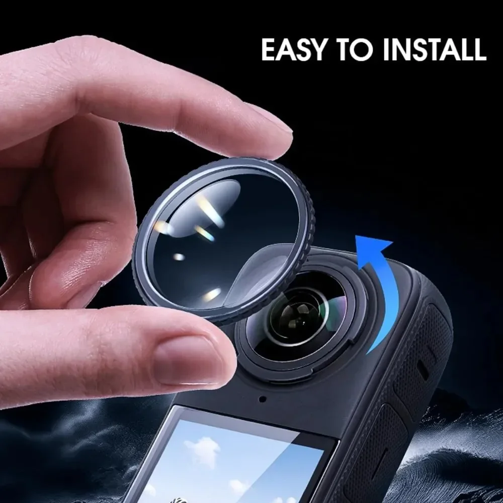 Película de lente【Diseño giratorio y desmontable】 Gire suavemente la base protectora de la lente para quitarla, lo que la hace conveniente para el autoreemplazo.【Material de alta resistencia】: nuestro protector de lente Insta360 X5 está hecho de material de alta resistencia, lo que brinda una fuerte protección para las lentes de su cámara.Su diseño es para evitar rayones y otros daños potenciales sin afectar la función de la lente.【Ajuste preciso】: Nuestra película protectora de lentes está hecha a medida de acuerdo con las especificaciones precisas de Insta360 X5, proporcionando un ajuste 1:1 real que se alinea con la lente de la cámara para lograr una combinación perfecta.【Diseño de borde antideslumbrante】: el borde de la película de la lente está tratado con negro mate, lo que ayuda a reducir el deslumbramiento y la luz parásita.【Componentes protectores】: Tiene múltiples funciones como resistencia al rayado, resistencia al agua, resistencia al polvo y resistencia a la deformación.También tiene resistencia a altas temperaturas, lo que garantiza que la lente de su cámara esté protegida de diversos factores ambientales.Especificación:Material: PCPelícula templada Vidrio templadoAplicable a: Para Insta360 X5