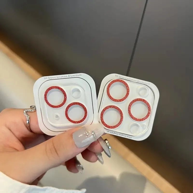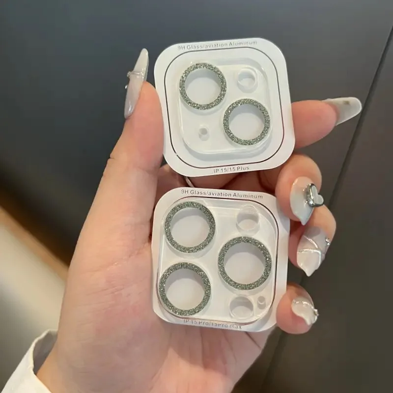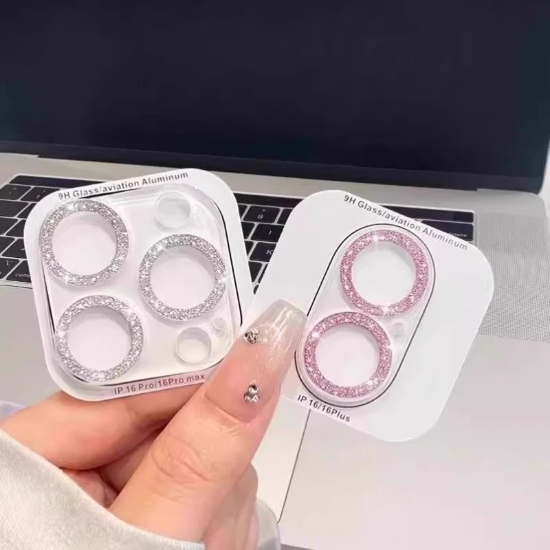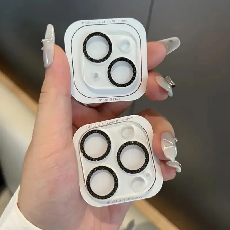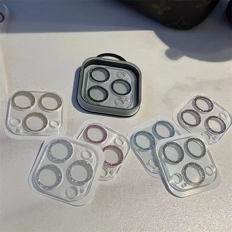 Protector de lente de cámara de cristal transparente con purpurina para iPhone 16 15 14 13 Pro Max Mini Plus 16Pro 16Promax IPhone16 i16 cubierta de lente