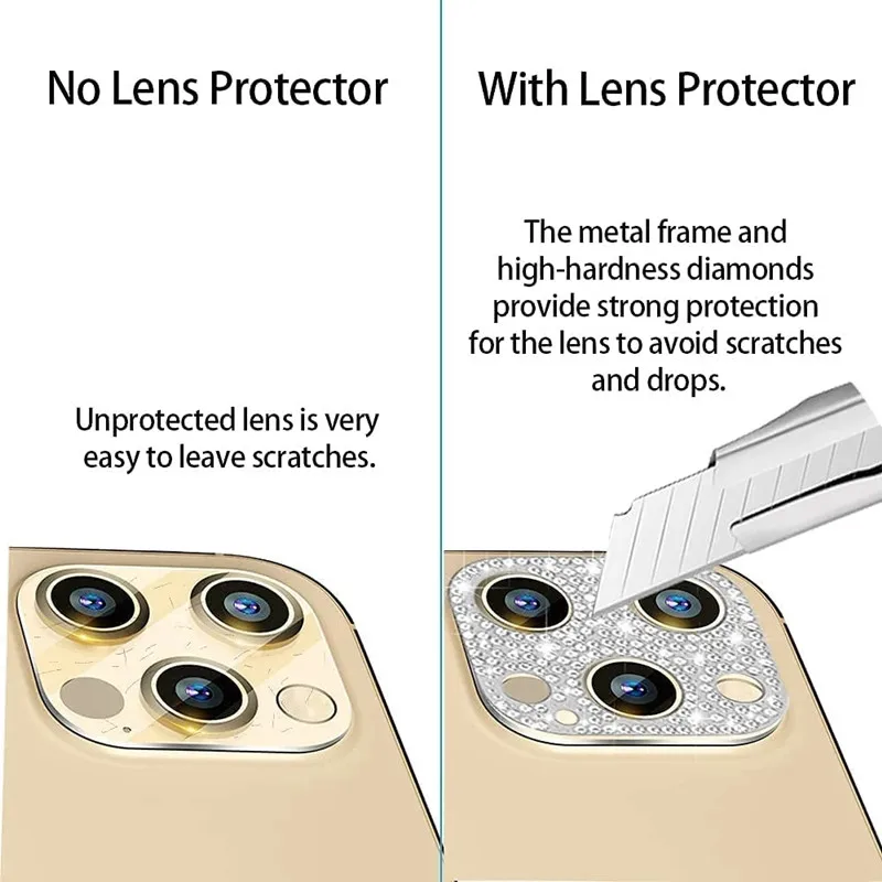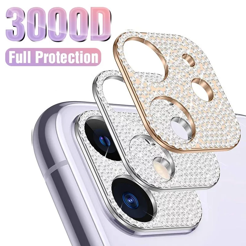 Comprar Protector de lente de cámara de diamante para IPhone 11, 12, 13 Pro Max, cristal brillante, protectores de pantalla de Metal para IPhone 13, 12 Mini