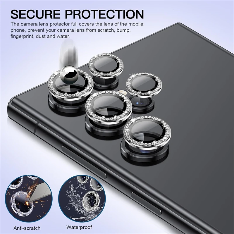 Comprar Protector de lente de cámara de diamante de Metal para Samsung Galaxy S25 S22 S24 Ultra S23 Plus S25Ultra S25 + anillo de vidrio templado cubierta completa