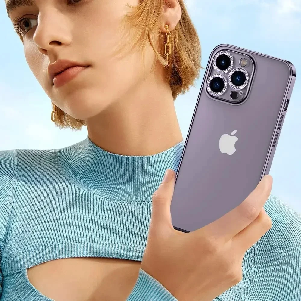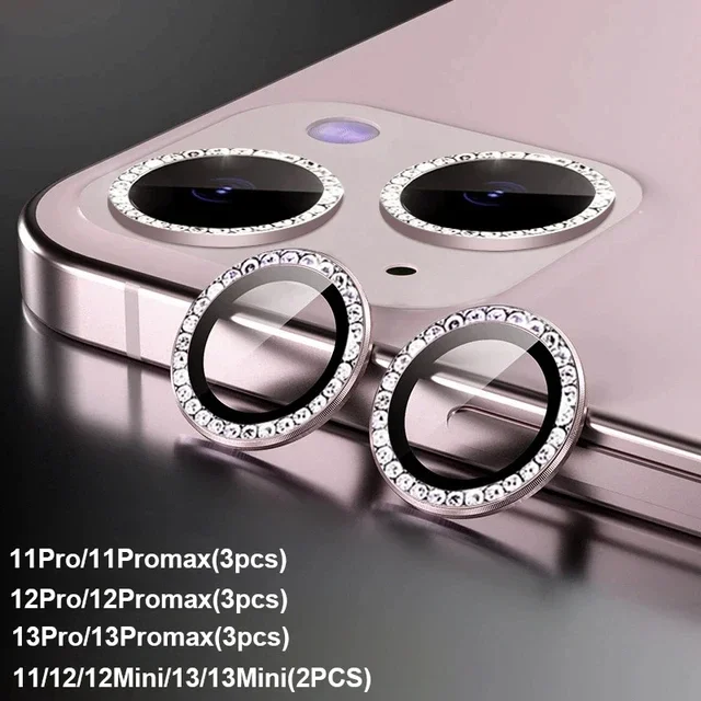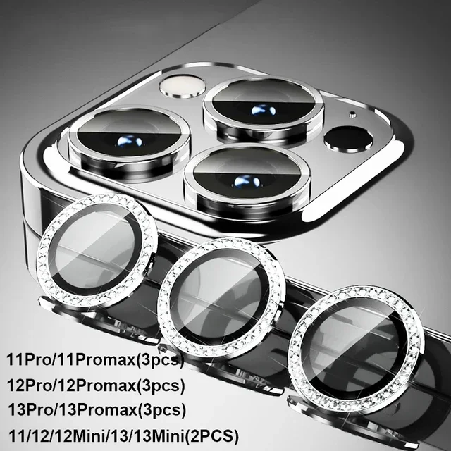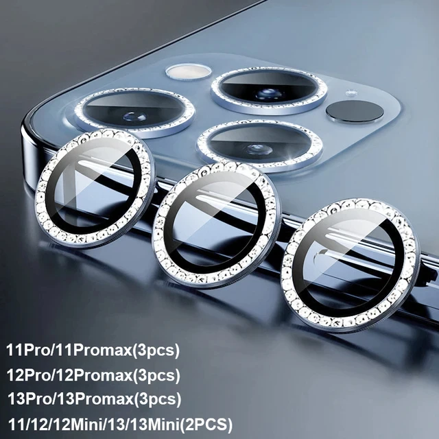 Protector de lente de cámara para iPhone 11 12 13 Pro Max Mini 15 Pro Max Cristal protector de metal de diamante para iPhone 14 Plus Cristal de lente